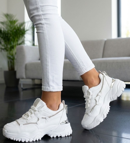 Białe buty sportowe na platformie /G4-3 14617 T620/