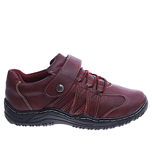 Bordowe półbuty damskie na rzep /B6-3 14630 T189/