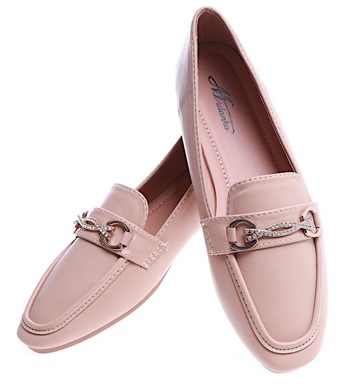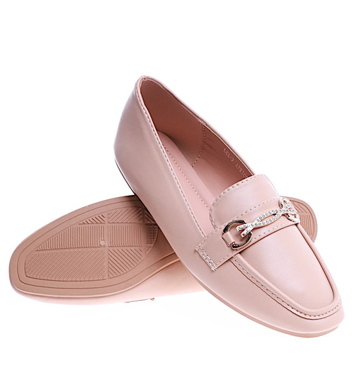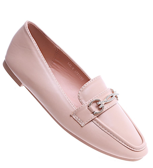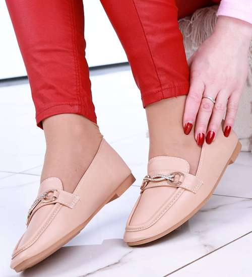 Beżowe balerinki lordsy z łańcuszkiem /A4-3 14647 T236/