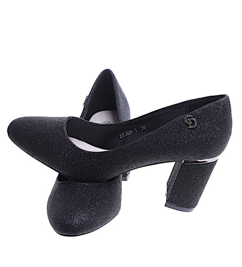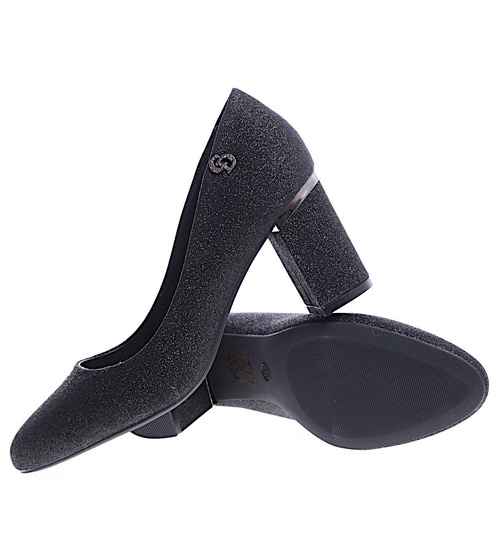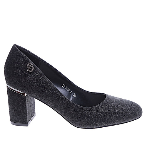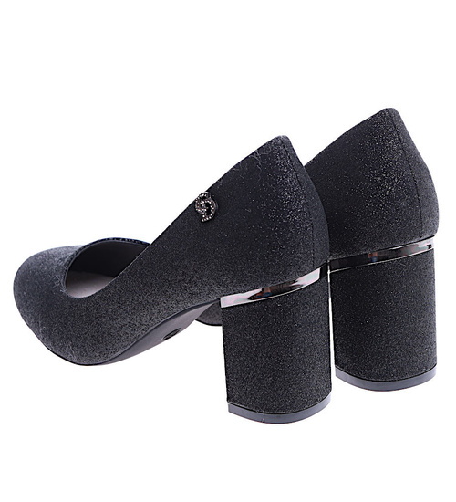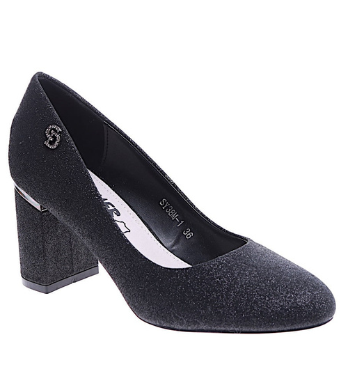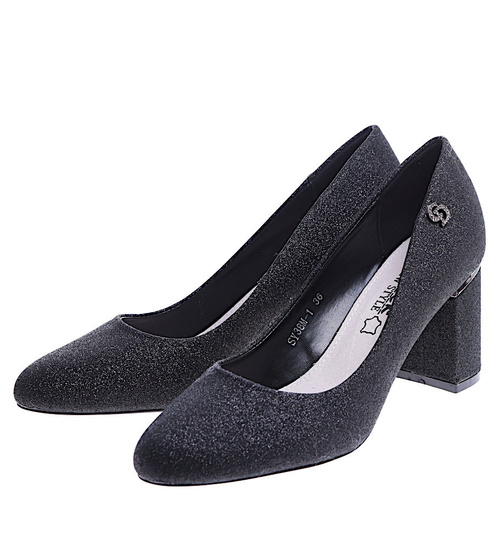 Czarne brokatowe czółenka na słupku /A10-2 14668 T577/