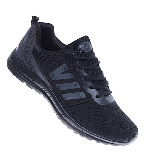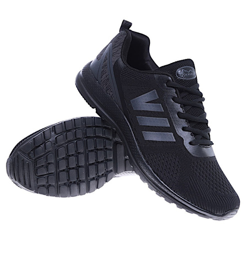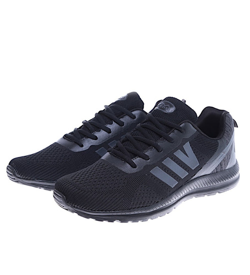 - Sportowe trampki wykonane z miękkiej tkaniny w kolorze czarnym.