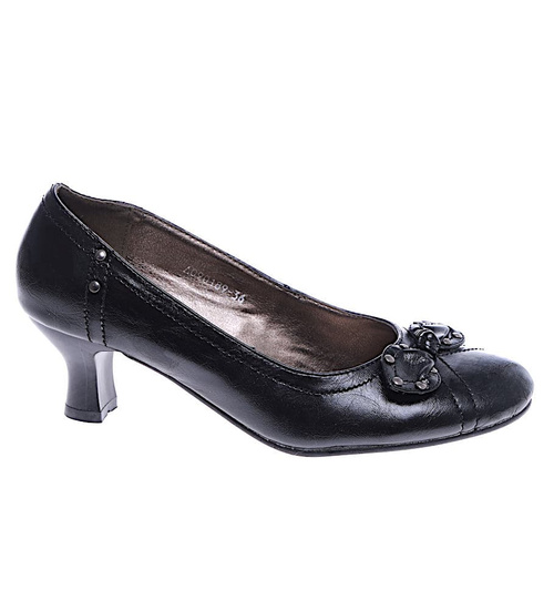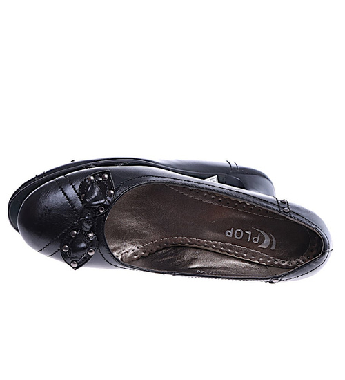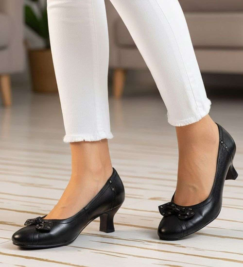Czarne czółenka damskie na niskim obcasie z kokardką /A5-3 14717 T132/