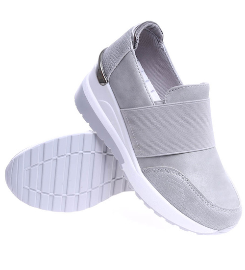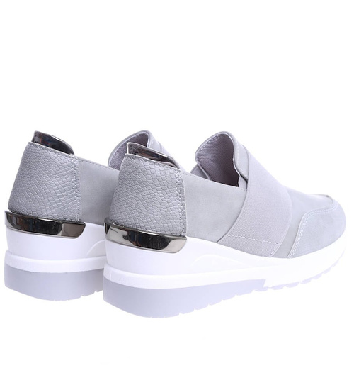 Szare wsuwane sneakersy na koturnie /G5-1 14744 T463/