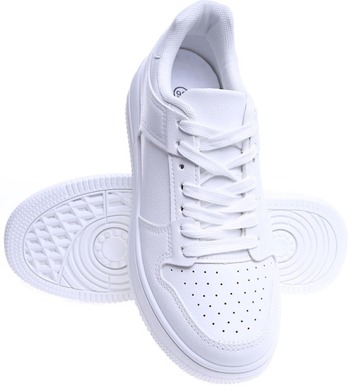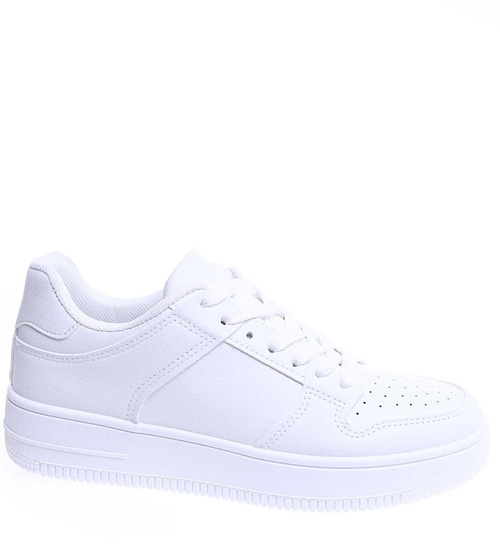 Wiązane białe trampki damskie /E9-3 14789 T483/