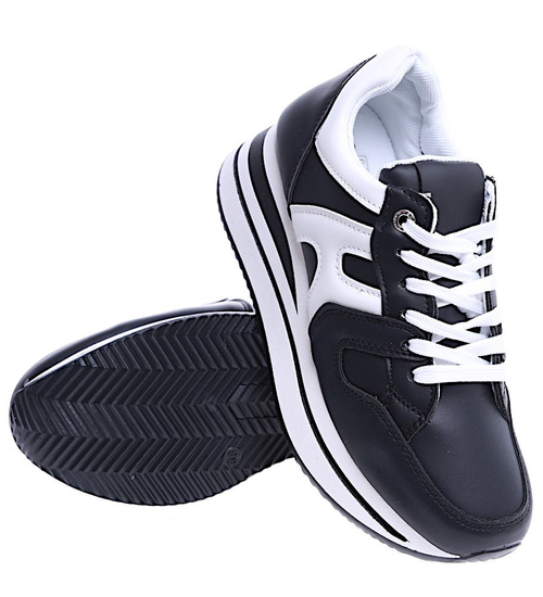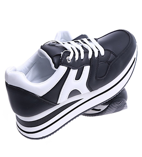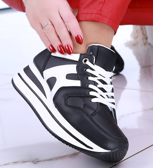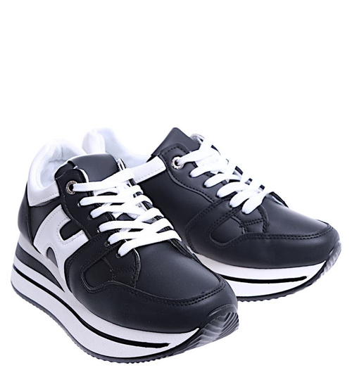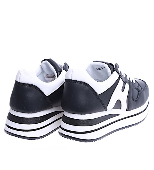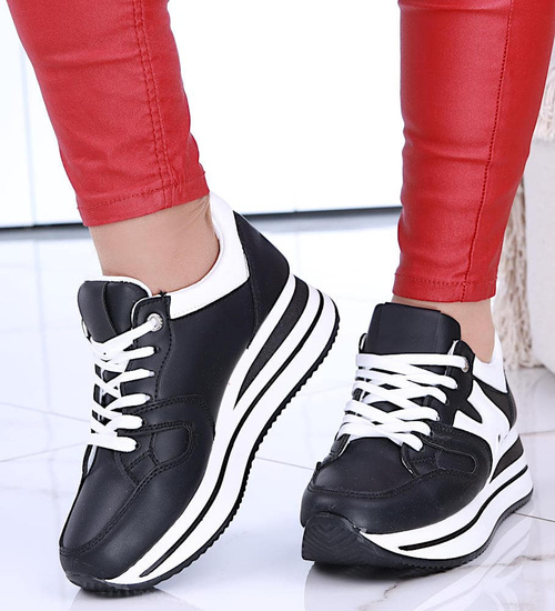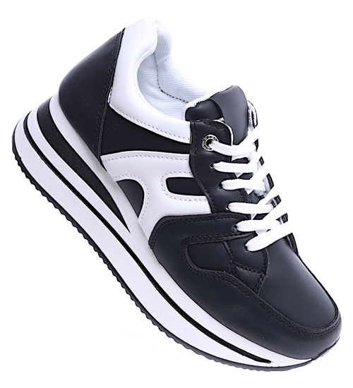 Czarne damskie buty sportowe sneakersy na koturnie /G1-2 14788 T383/