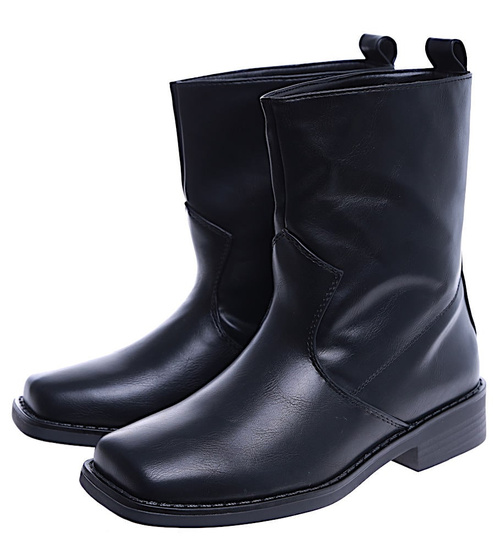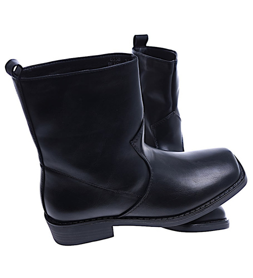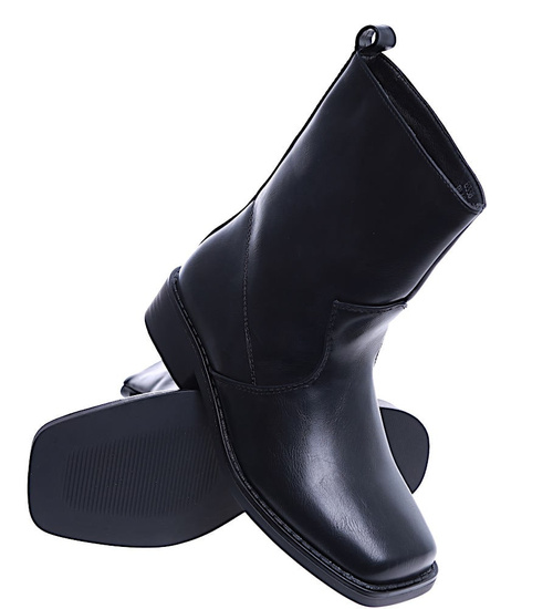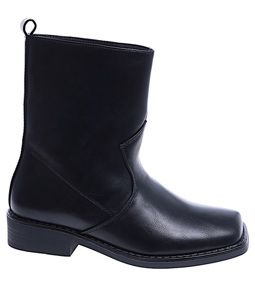 Ocieplane czarne botki damskie na niskim obcasie /E7-1 14752/