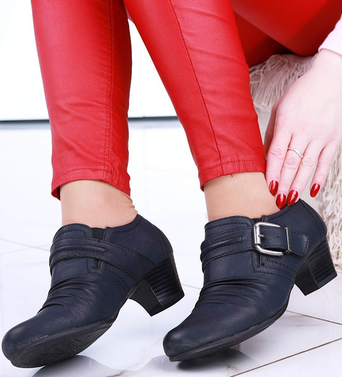 Czarne czółenka damskie na niskim obcasie z klamerką /E7-3 14766 T256/