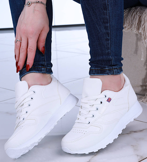 Białe damskie klasyczne sneakersy sznurowane /B4-3 14774 T461/