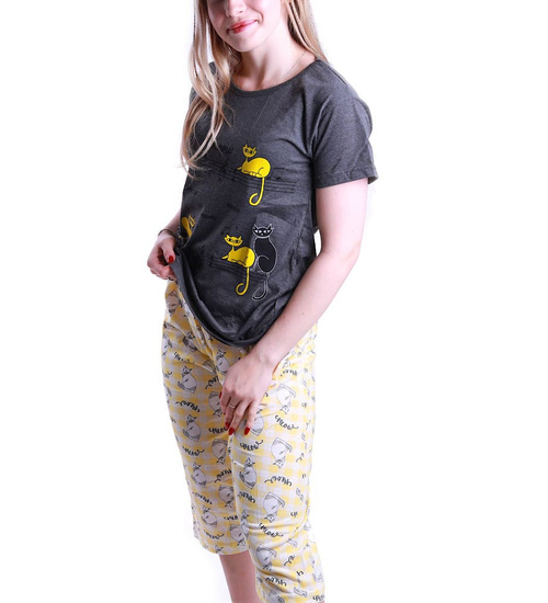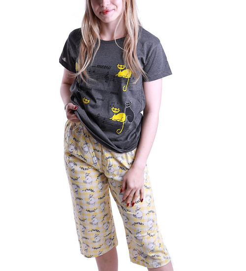 Szaro żółta piżama z krótkimi rękawkami /H2-K40 P49 S195/
