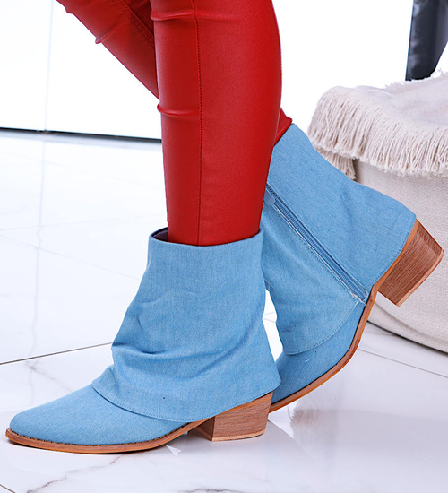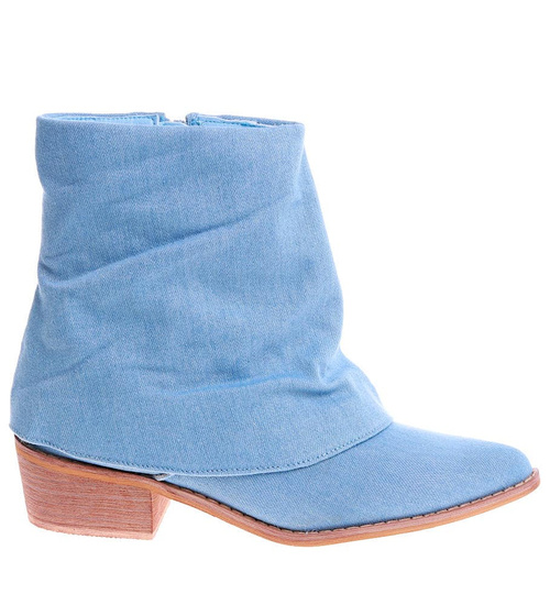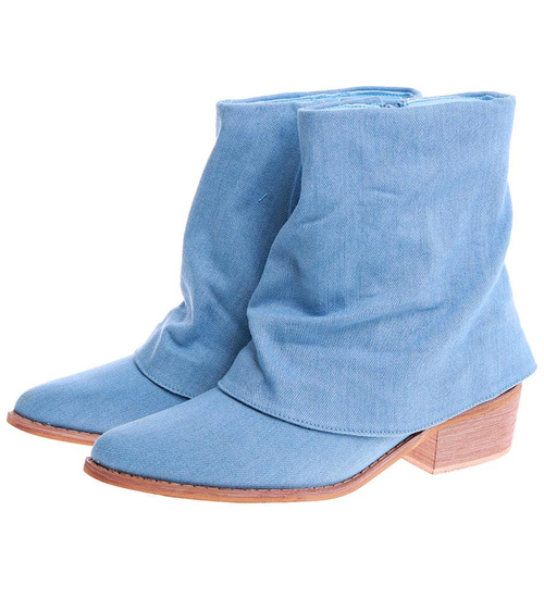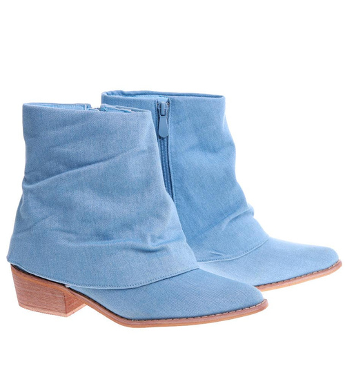 Jeansowe botki kowbojki na niskim obcasie /A8-3 14833 T630/