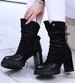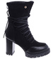 Zamszowe botki na słupku i platformie czarne /D2-1 14841 T108/