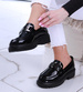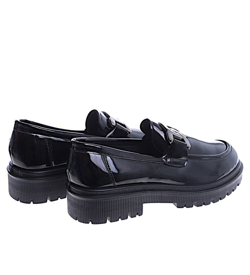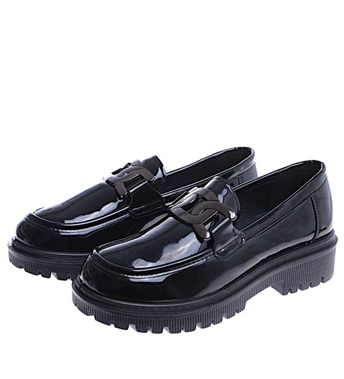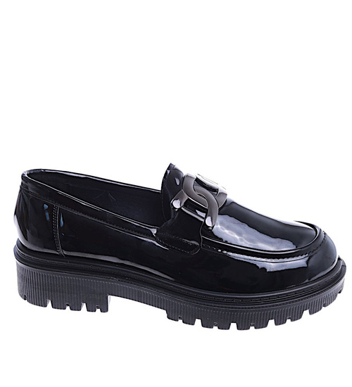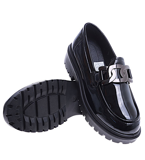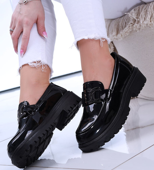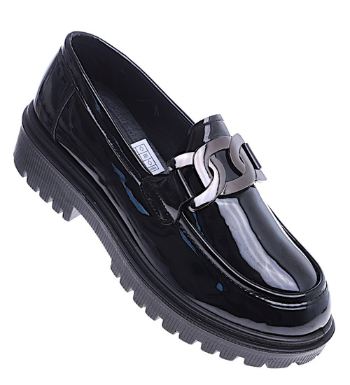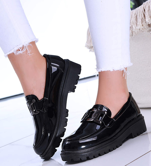 - W przypadku czarnych loafersów na platformie z lakierowanej skórki ekologicznej mamy do czynienia z niezwykle eleganckim i modnym wyborem.