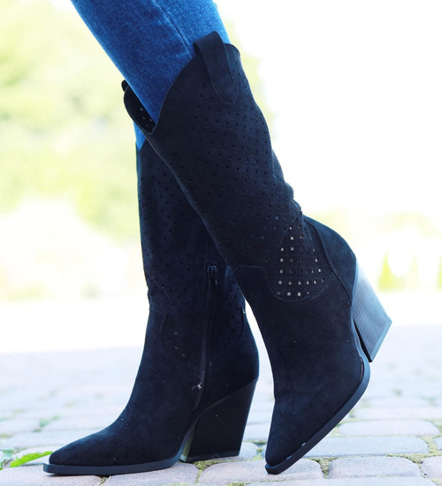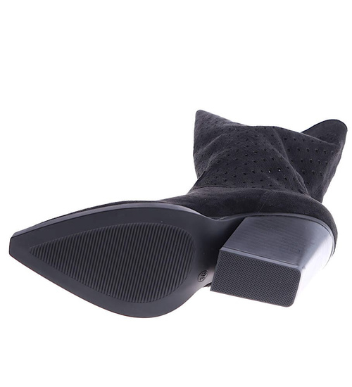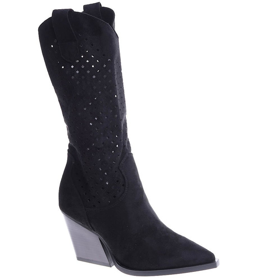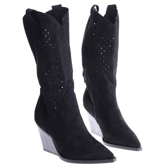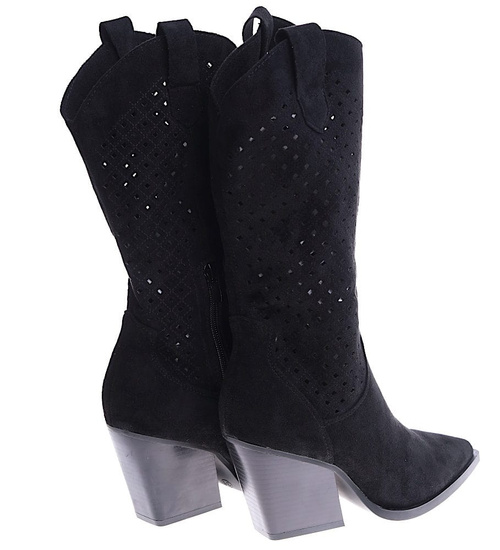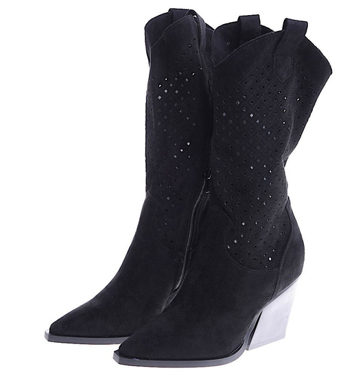 Ażurowe czarne kowbojki na słupku /C3-2 14913 T834/