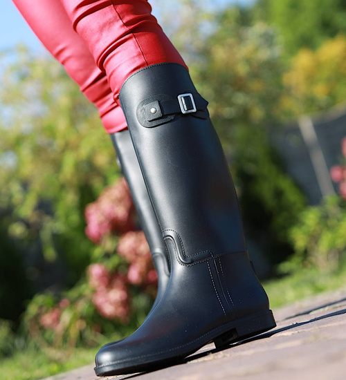 - Stylizacja i uniwersalność: Te kalosze to nie tylko obuwie na deszczowe dni - prezentują się niesamowicie stylowo i pasują do różnych okazji. Idealnie komponują się z miejskimi stylizacjami, są doskonałym wyborem na spacer z psem czy wypad do lasu.