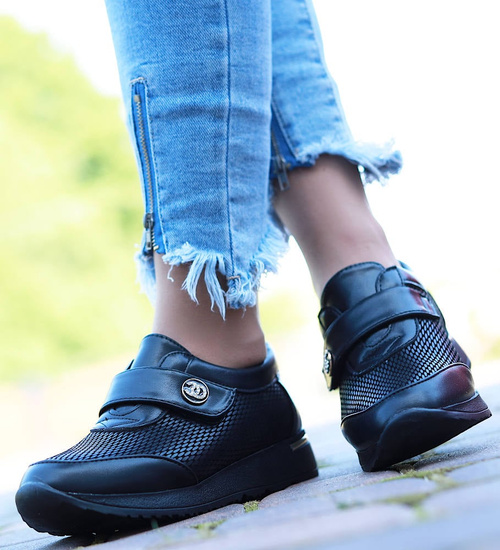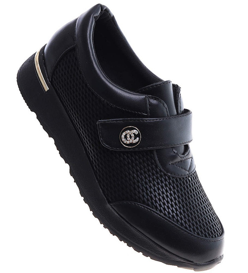 Czarne dziewczęce półbuty na rzepy /C6-2 14941 T039/