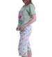 - W skład zestawu wchodzi koszulka z krótkimi rękawami oraz spodenki, których nogawki sięgają do kolan.