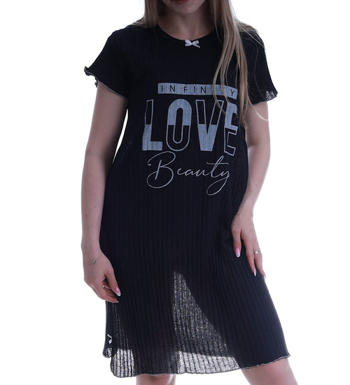 Czarna koszula nocna Love I miss You /H2-K29 P92 S195/