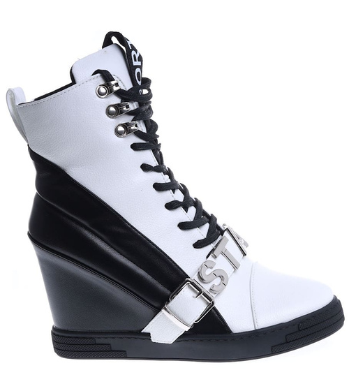 Biało czarne damskie trampki sneakersy na koturnie Seastar /G13-3 14986 T937/