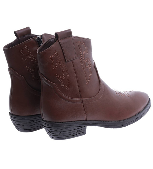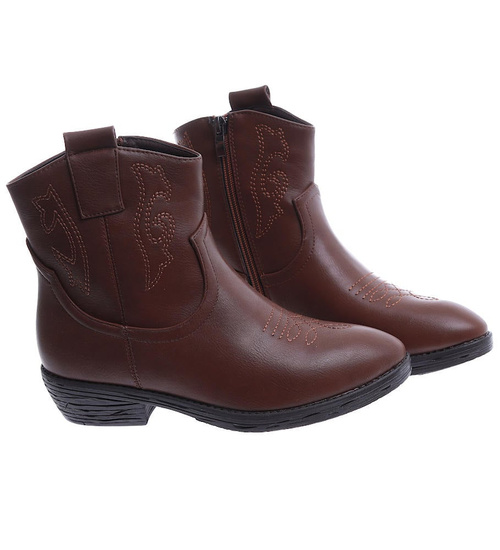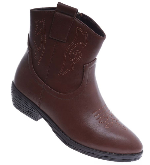 Brązowe botki kowbojki z suwakiem /C2-214999 T296/