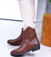 - Brązowe botki damskie na płaskim obcasie wykonane z ekologicznej skórki.