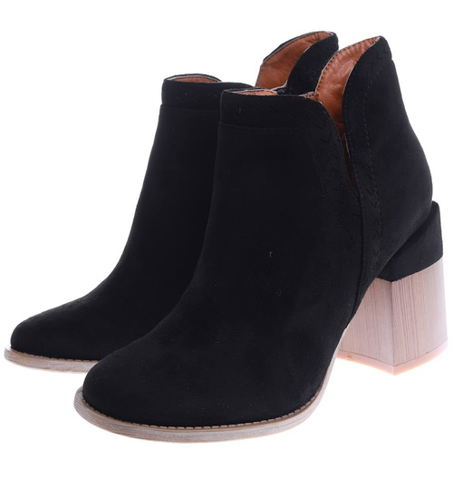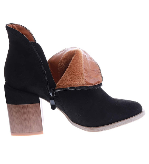 Czarne ocieplane botki na słupku /F1-3 15022 S334/