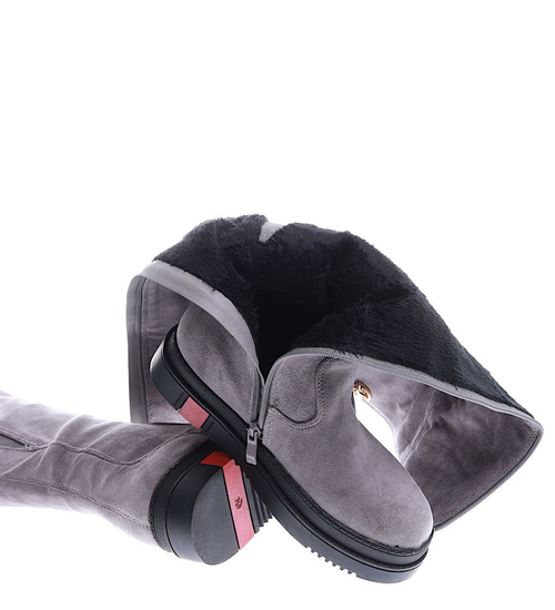 Szare kozaki oficerki na platformie /A4-2 15001 T680/
