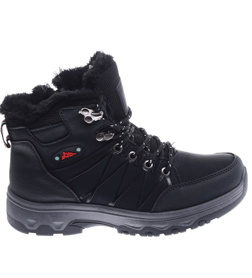 Czarne chłopięce buty trekkingowe z ociepleniem /F8-3 14994 T569/