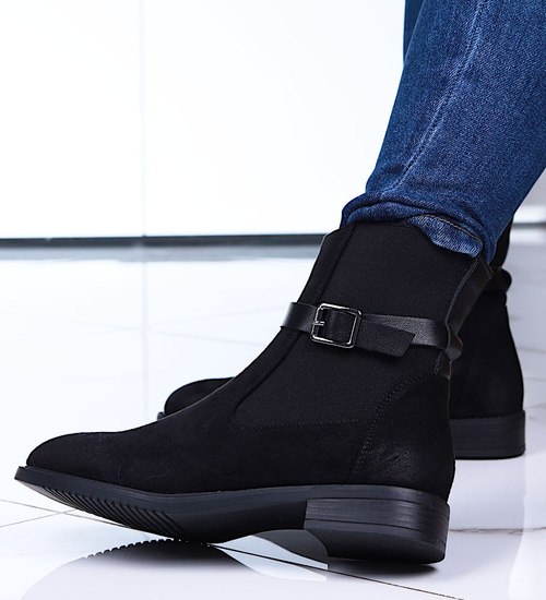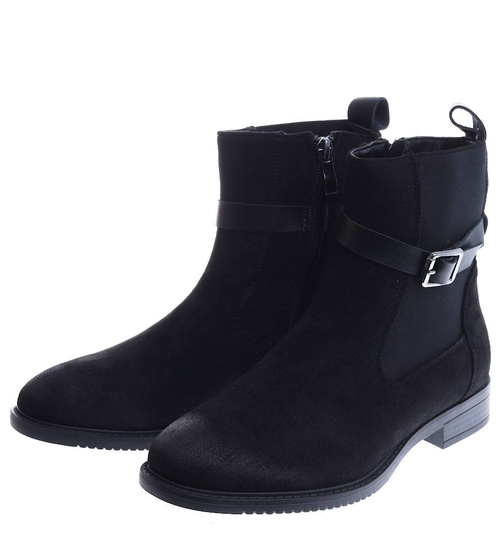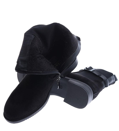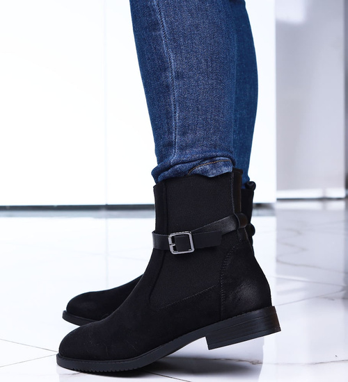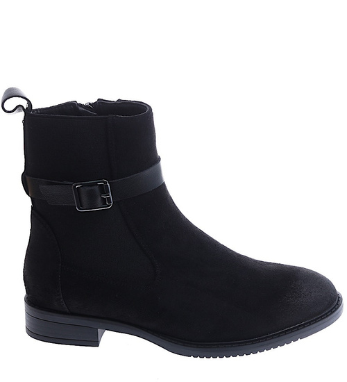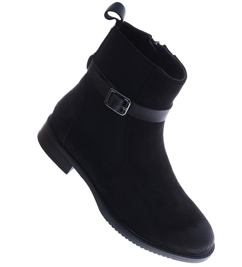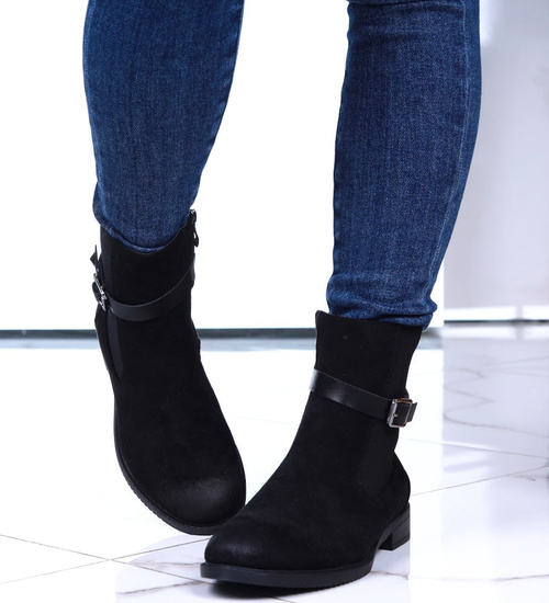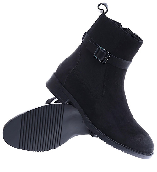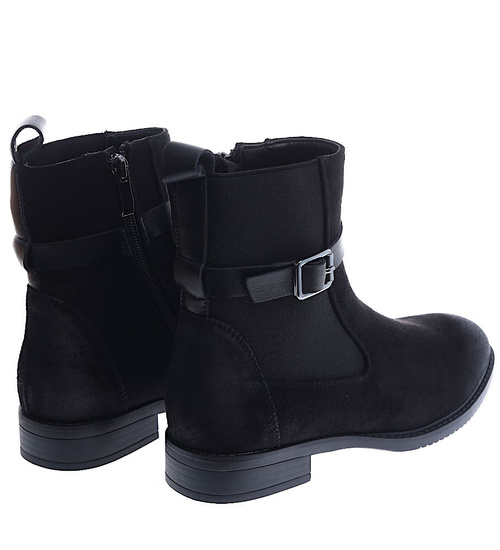 Czarne zamszowe botki na płaskim obcasie /D8-1 15052 T438/