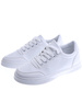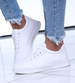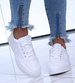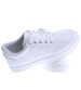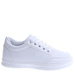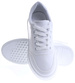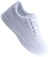 - Wiązane damskie trampki wykonane z miękkiej skórki ekologicznej w klasycznym, białym kolorze to praktyczny wybór z szerokim spektrum zastosowań.