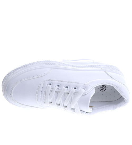 Sznurowane białe trampki damskie /G3-2 15041 T360/