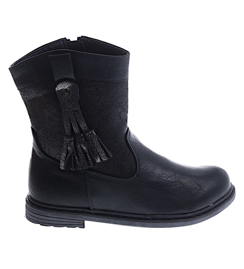Czarne dziewczęce kozaki z frędzlami /G6-1 15036 T390/