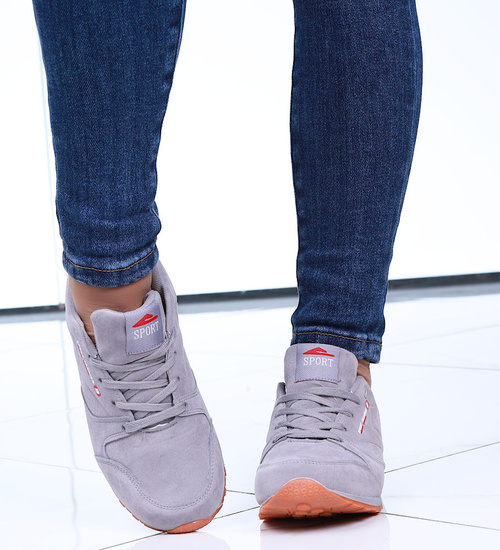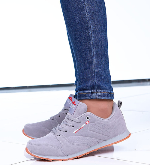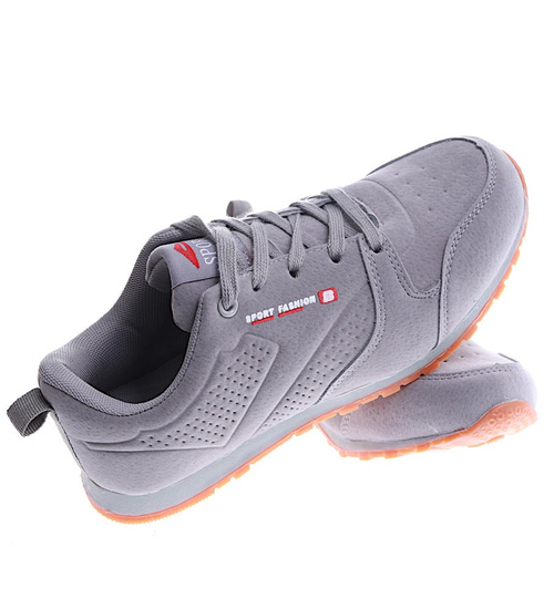 Wiązane szare sportowe buty damskie /B1-2 15092 T396/