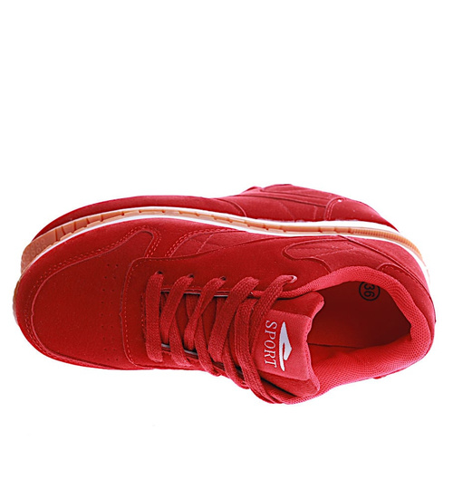 Sznurowane czerwone buty damskie /G3-3 15098 T339/