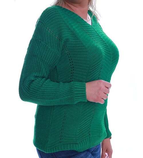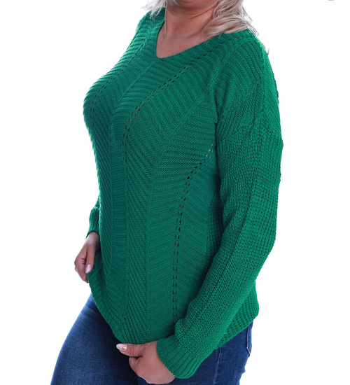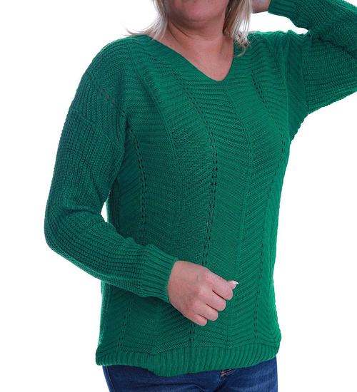 Casualowy sweter damski z wzorkiem Size Plus Zielony /H2 A2-2 UB479 T189/