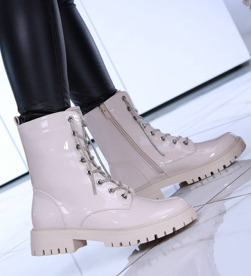 Beżowe botki workery z cyrkoniami /C3-2 15112 S901/