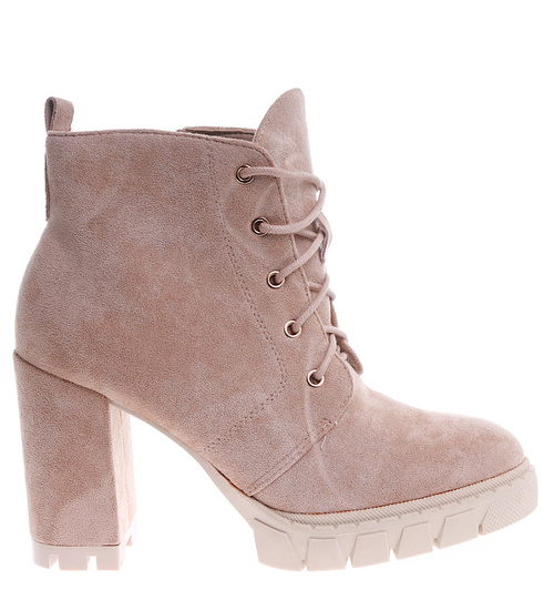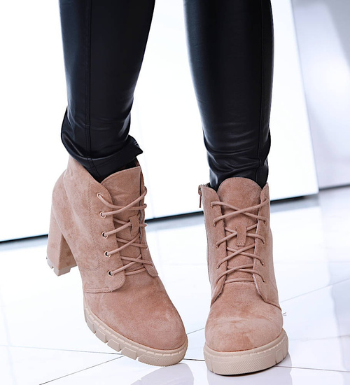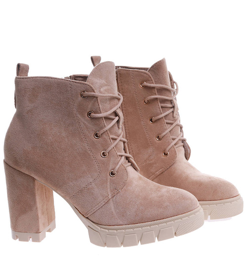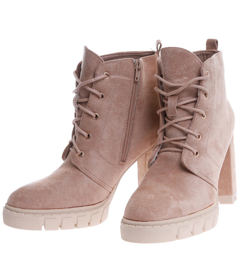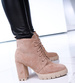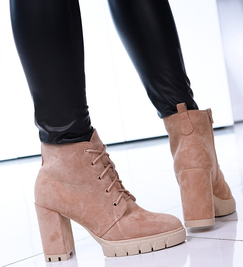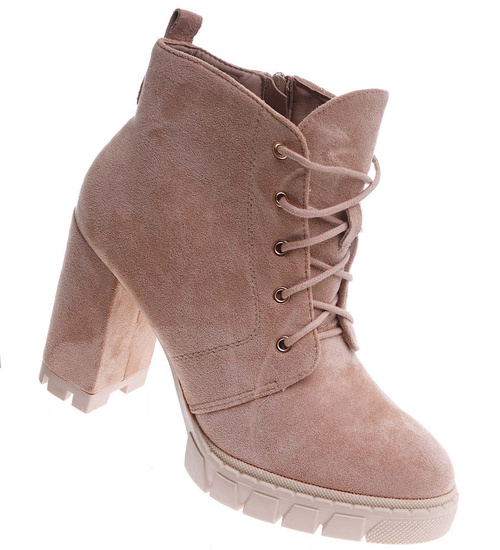 Zamszowe botki na słupku i platformie Khaki /G12-2 15129 T739