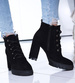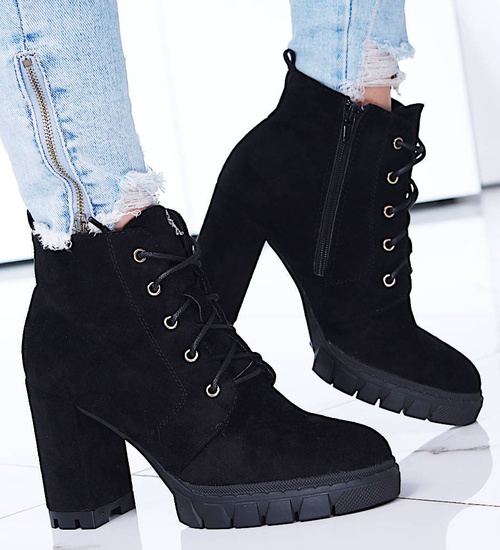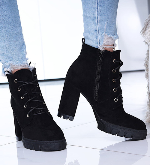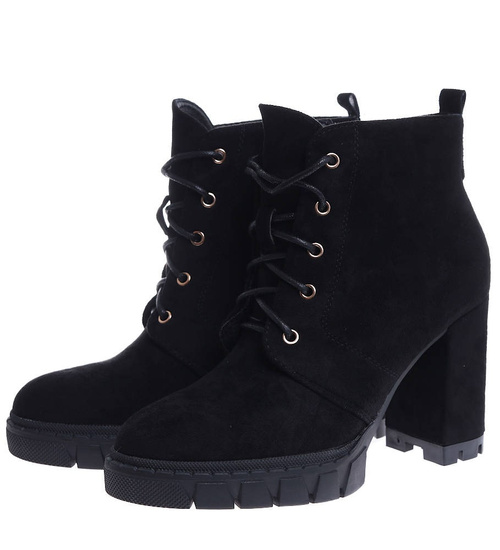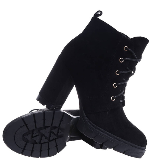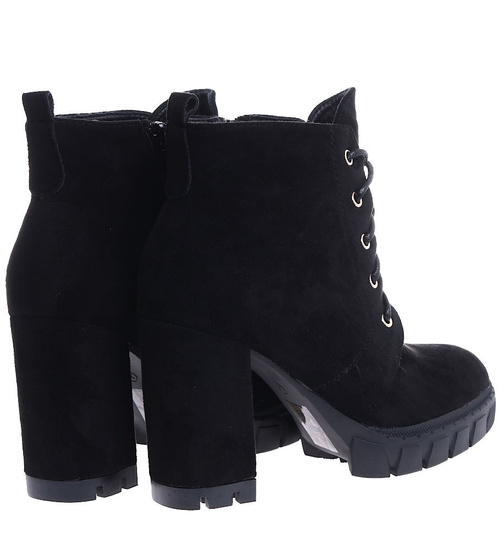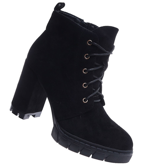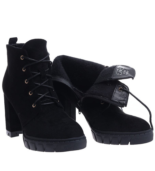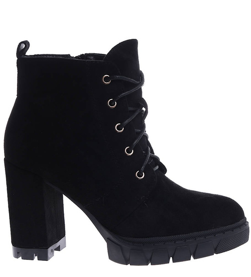 Zamszowe czarne botki na słupku i platformie /G6-1 15118 T739/
