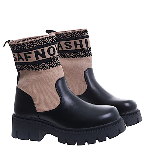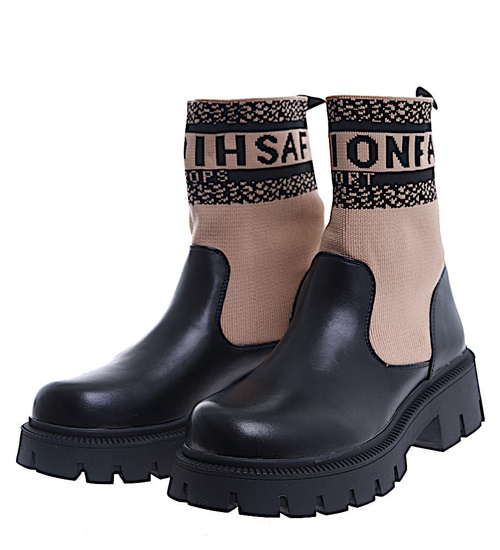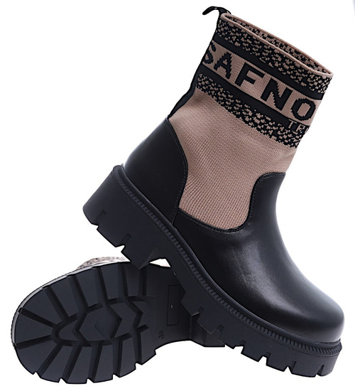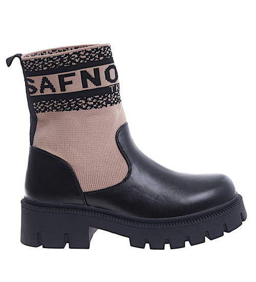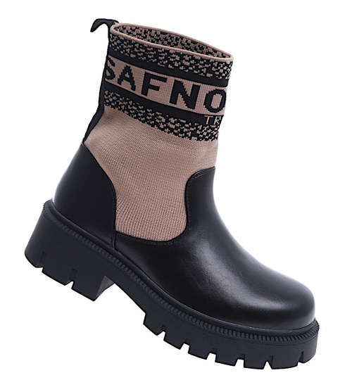 Czarne damskie botki trapery z elastyczną cholewką /F1-2 15141 T474/