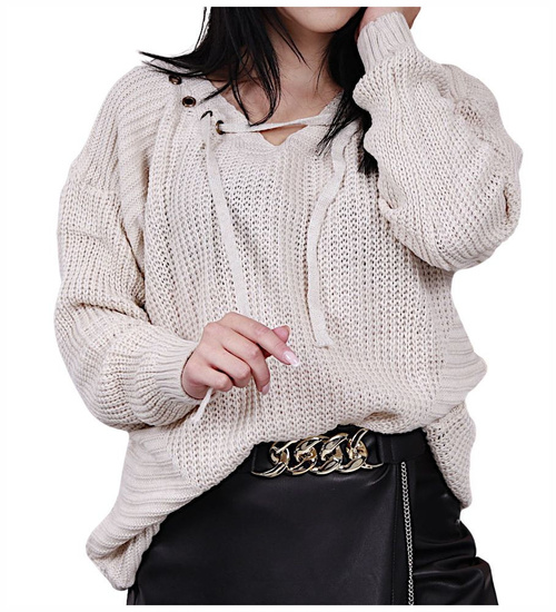 - Prezentowany model w kolorze bezowym.