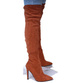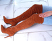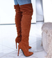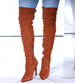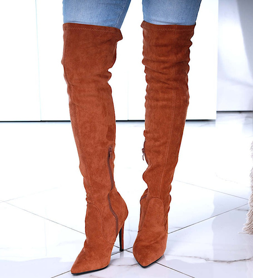 - Wysokie damskie kozaki za kolano `wykonane z miękkiego, zamszowego materiału w kolorze camel.