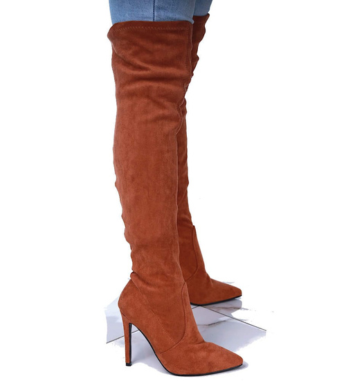 Zamszowe kozaki muszkieterki na szpilce Camel /G13-3 15117 T535/