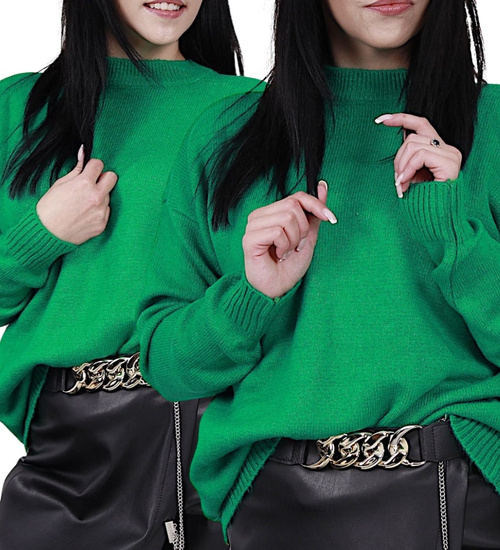 - Modna damska bluzka w kolorze butelkowej zieleni.