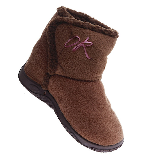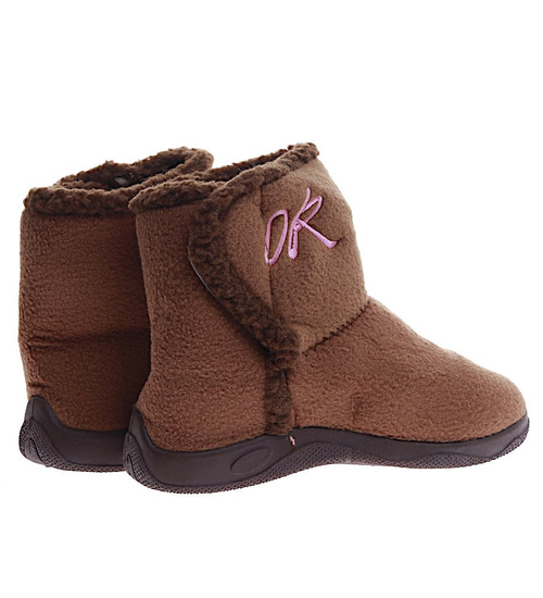 Brązowe dziewczęce kapcie pluszowe bambosze na rzep /G9-1 15163 T195/