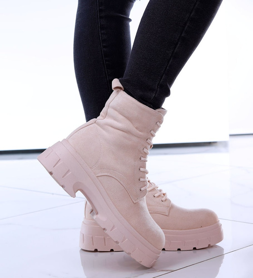 Wysokie botki workery z kożuszkiem Beżowe /B6-1 15171 T498/
