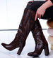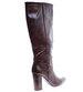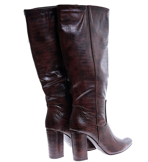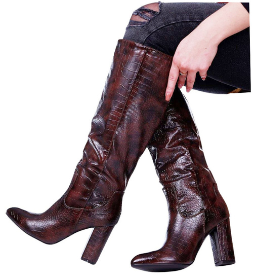 Brązowe kozaki damskie na stabilnym słupku /F2-1 15178 T389/
