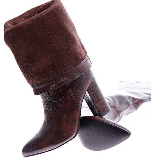 - Brązowe damskie kozaki subtelnie ocieplone kocem obuwniczym na chłodne dni!