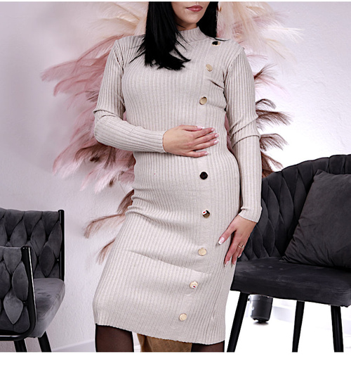 - ✔️Śliczna damska tunika wykonana z elastycznego materiału w beżowym kolorze ozdobina guziczkami.