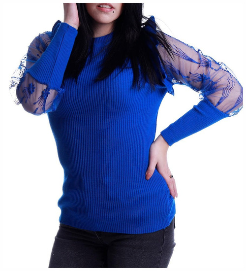- Jej głównym atutem są koronkowe rękawy, które dodają bluzce subtelnego uroku i delikatności.