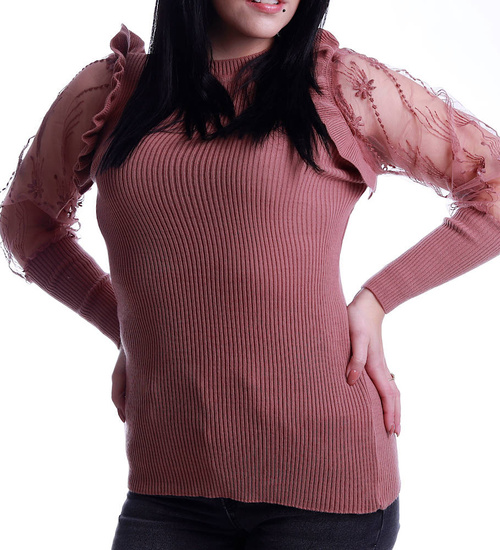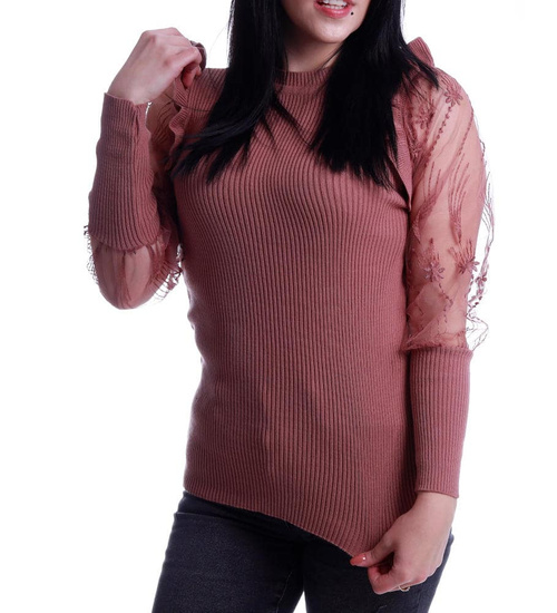 Bluzka z koronkowymi rękawami brudny róż /H2 A3-1 UB544/ T450