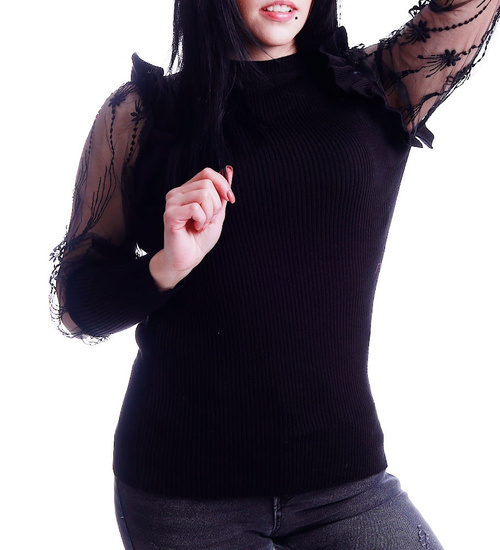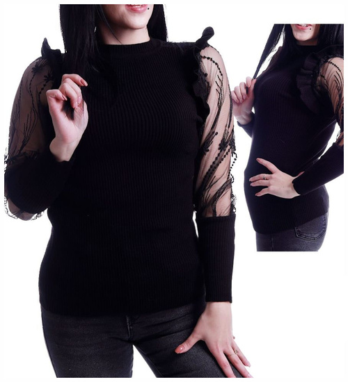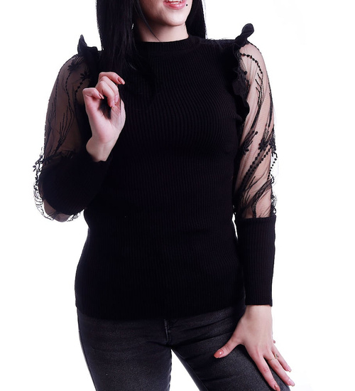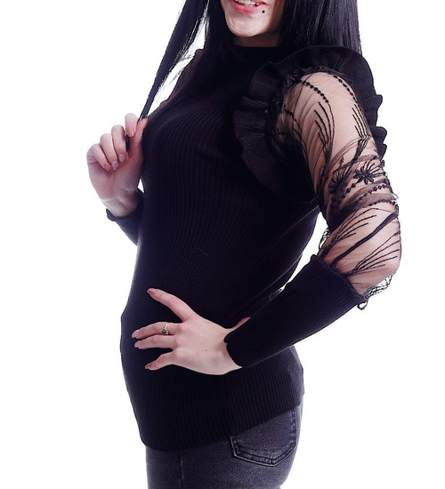 Czarna bluzka z koronkowymi rękawami /H2 A3-1 UB537/ T450